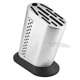 (More customer reviews)I have a whole set of Global knives.This holder looks great and is very functional.I am not a fan of wooden blocks.Most non-wooden blocks do not hold knives in a way as to not hurt the blade.This knife block allows the knives to sit in their slots without ever touching the blade.It has thick holes for the forged knives and thin ones for the stamped knives.It also has a hole for your sharpener.